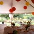 This lovely garden wedding and celebration was at the home of our talented couple, and the groom’s architectural expertise definitely came in handy during the planning stages of the event to transform their back yard into outdoor rooms and party spaces. Together with the experts at Eventquip who carefully measured, planned and then built a dance floor and tent over the in-ground pool, an inviting atmosphere was created that accommodated all of their guests comfortably. The bride embellished the tent’s interior with vibrant paper lanterns.