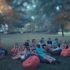 Comfy stuffed bean bags surrounded the fire pit for toasting